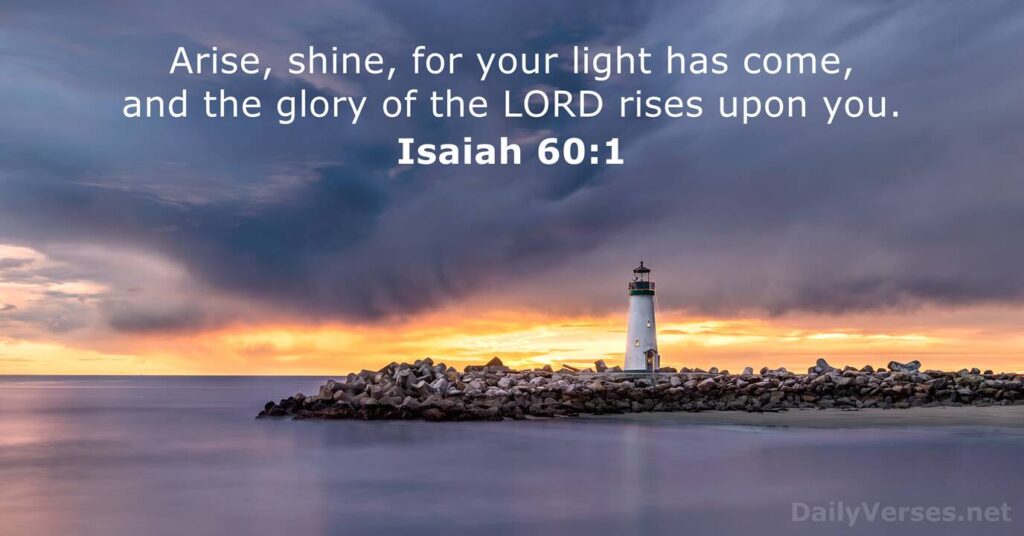 ““Arise, shine, for your light has come, and the glory of the Lord rises upon you.” Isaiah‬ ‭60 ‬: ‭1‬ ‭NIV‬‬