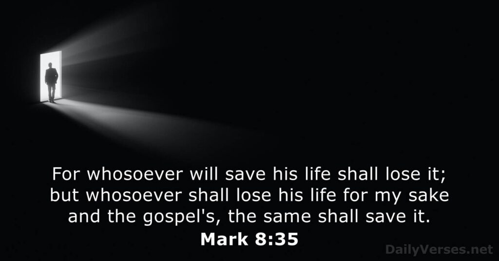 “For whoever wants to save their life will lose it, but whoever loses their life for me and for the gospel will save it.” Mark 8 : 35 NIV